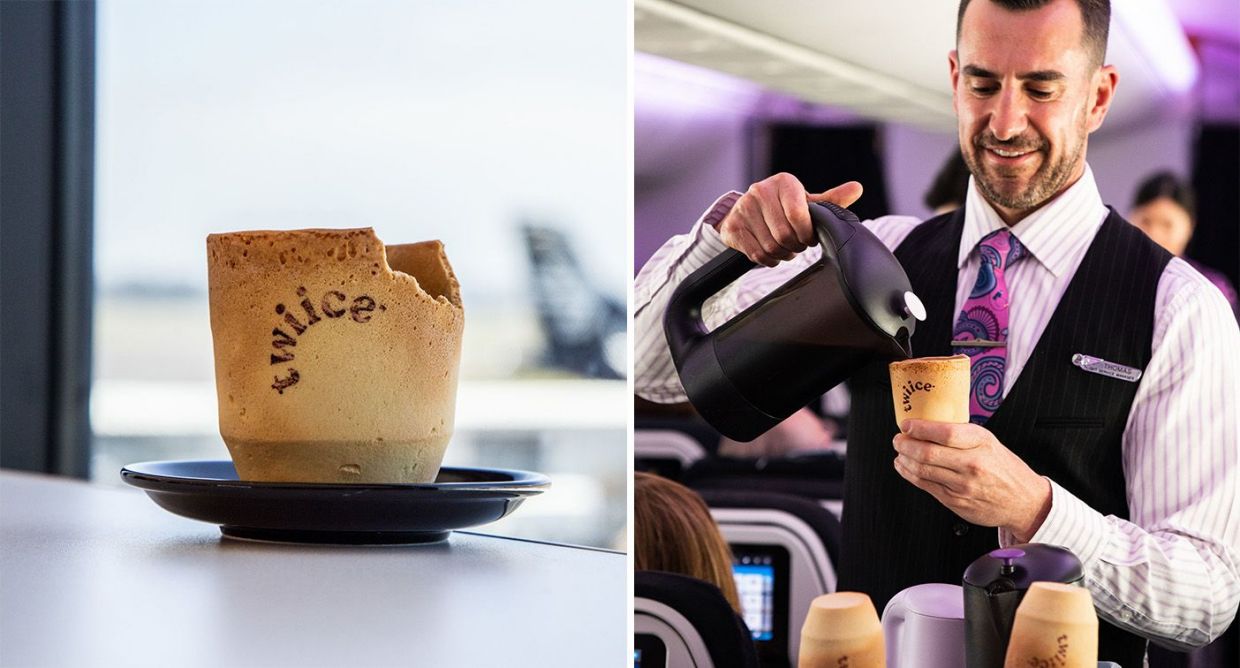 Según informa Katie Holmetier, encargada del área de Experiencias de los Clientes de Air New Zealand, «las tazas no solo conservan su forma, también se pueden comer una vez terminado el café«. Para la producción de este envase comestible, la aerolínea se ha asociado con la empresa neozelandesa Twiice.