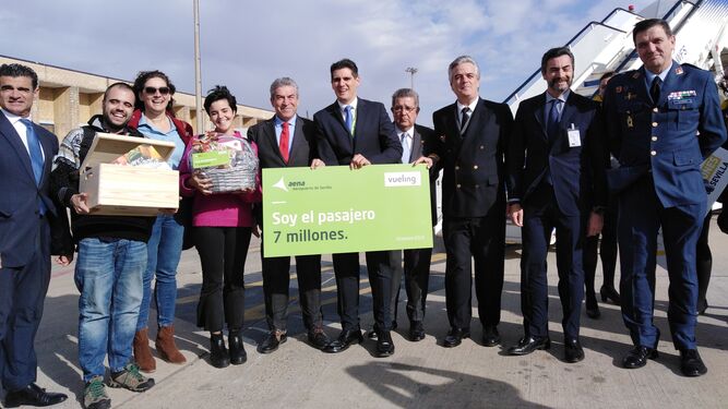 El Aeropuerto de Sevilla ha celebrado hoy la llegada de su “Pasajero 7 millones”, una cota histórica con la que bate ampliamente los récords ya alcanzados en 2017, cuando registró 5,1 millones de usuarios, y 2018, que cerró con cerca de 6,4 millones.