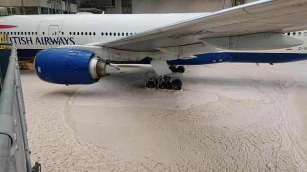 Hace unos días, el sistema de protección contra incendios de un hangar de British Airways, en el Aeropuerto de Londres Heathrow, se prendió por error cubriendo de espuma todo lo que se encontraba a su alrededor. En el momento del incidente, un Boeing 777-200ER de la aerolínea, con matrícula G-YMMB, se encontraba estacionado en las instalaciones.